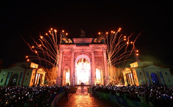 Arco della Pace - også kjent som Fredsbuen på norsk - er altså her OL-ilden skal skinne gjennom de neste ukene. Opprinnelig var buen en del av de romerske veggene i Milano. Den gikk da under navnet Porta Giovia, Jupiters Port.