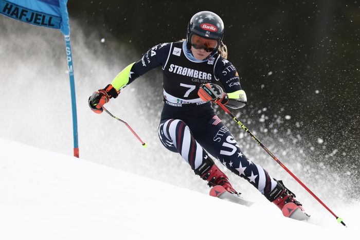 Kasper Vanessa kommer inn 1,01 bak Grenier. Men hun er raskere enn Shiffrin, som nå blir dyttet ned til 15. plass. Totalcupen er i fare for amerikaneren nå.