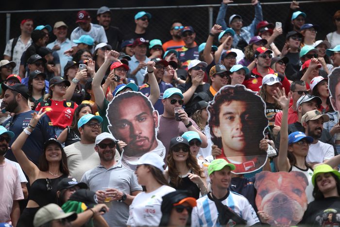 De to store heltene for publikum på Interlagos: Lewis Hamilton og Ayrton Senna. Foto: Reuters.