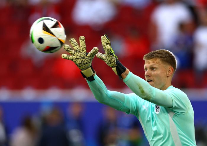 Denne karen får en travel kveld? Østerrike-keeper Patrick Pentz på oppvarmingen. Foto: Reuters