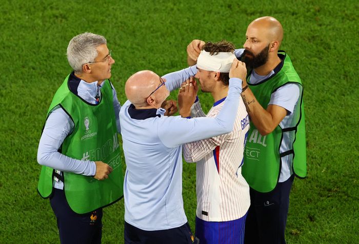 Blodig Mbappe. Men han kommer faktisk innpå igjen