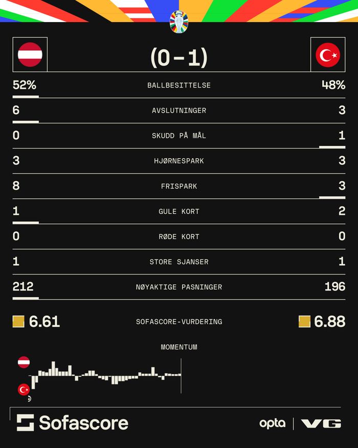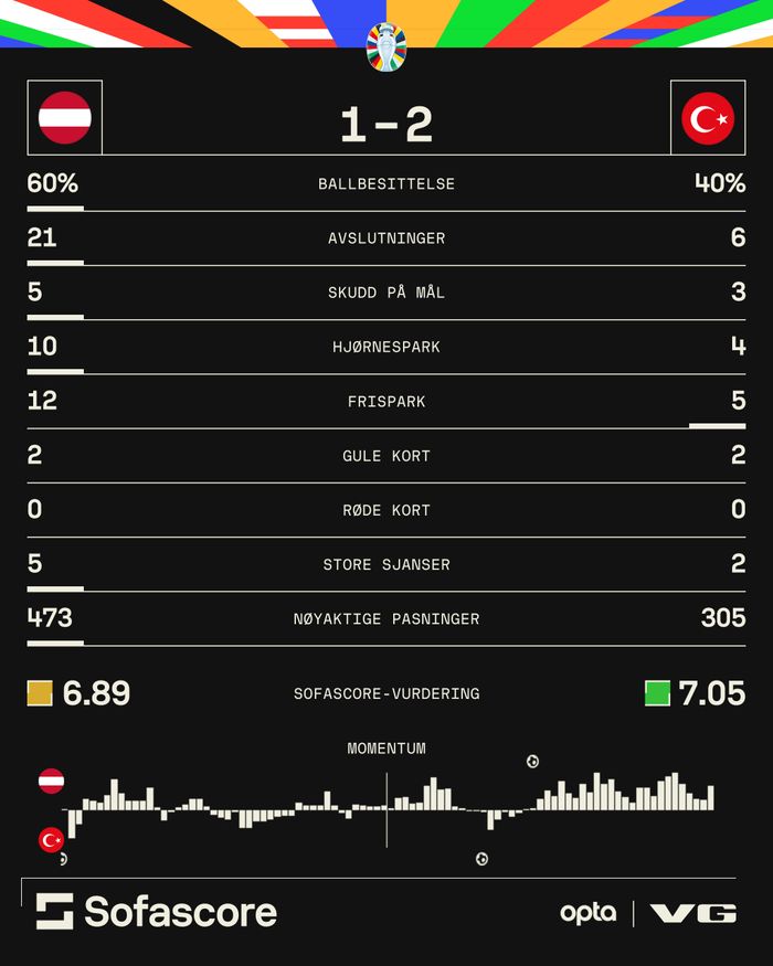Hei, og velkommen til dekningen av den siste åttedelsfinalen i årets EM. Den spilles mellom Østerrike og Tyrkia i Leipzig.