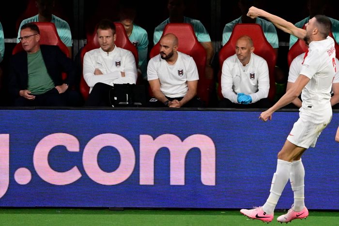 Østerrike (4-2-3-1): Pentz – Posch, Danso, Lienhart, Mwene – Seiwald, Sabitzer – Laimer, Baumgartner, Schmid – Arnautovic
