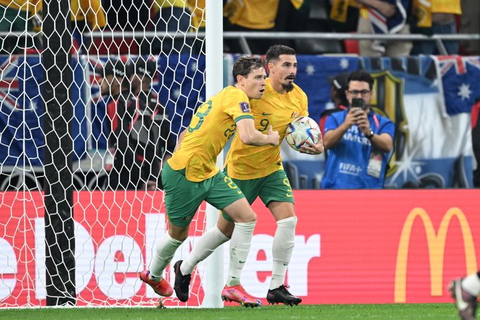 JØSS! Et innlegg klareres svakt av Otamendi, og den ballen plukker Goodwin opp. Han druser til fra utenfor 16-meteren, og det er et skudd som går via Enzo Fernandez og i lengste hjørnet. Det setter Martinez i mål helt ut av spill, og dermed har vi en kamp som lever igjen! Litt heldig scoring, men det blåser Australia i!
