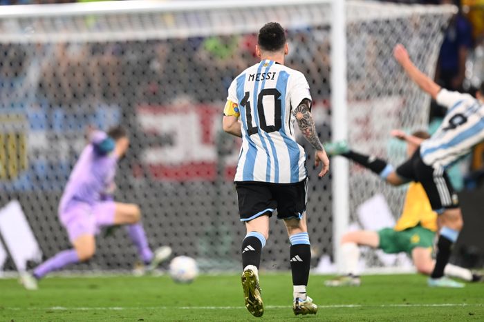 Scoringen til Lionel Messi gjør at han er oppe på ni VM-scoringer. Da går han forbi Diego Maradona (8). Foto: Bjørn S. Delebekk / VG.