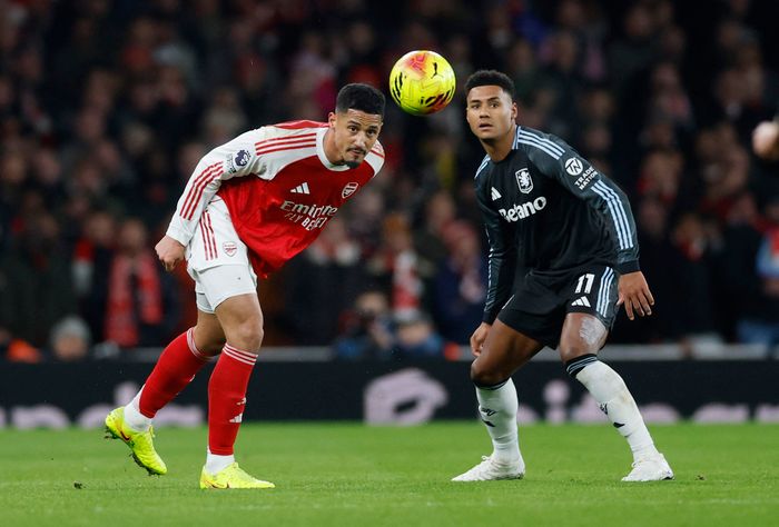 Villa i angrep. Rogers prøver seg på et skudd, men Gabriel får kontroll på ballen som han header ut til en corner.