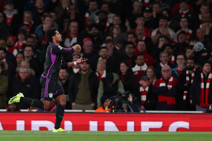 Nådeløst straffet! Og de får det av sine egne. Gabriel slurver med en stygg feilpasning på egen halvdel etter at Raya kommer rusende ut og kanskje stresser ham litt. Sané spiller strålende gjennom til Goretzka som følger opp med en nærmest like god stikker til Gnabry som takler ballen i mål fra 10 meter. Vi er like langt! Foto: Adrian Dennis/AFP