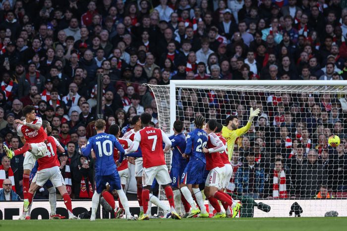 Et Chelsea-angrep ender etter mye om og men opp i Arsenalnettet, men de blåses av for offside. Delap satte ballen i mål, men Joao Pedro sto i offside. Soleklar.