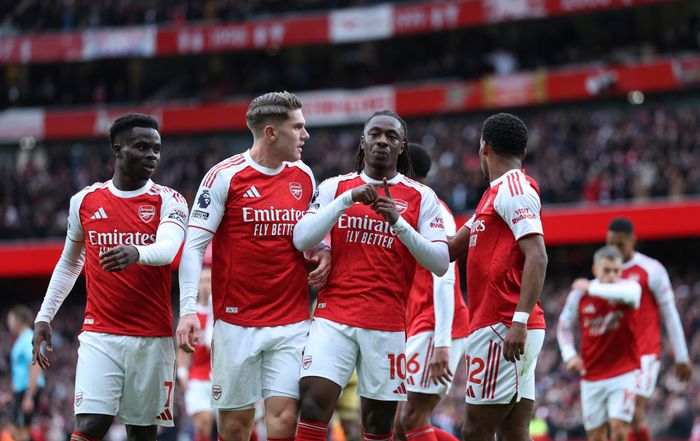 Nketiah med et strålende raid påv enstresiden mot Mosquera. Spissen får slått inn mot Mateta, men Gabriel kommer først på den og klarerer ut til hjørnespark.