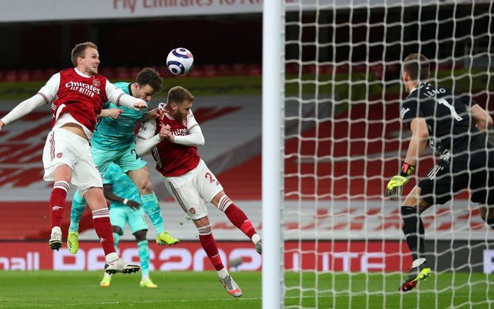 Alexander-Arnold tar corenren - Lacazette header unna ved første stolpe.