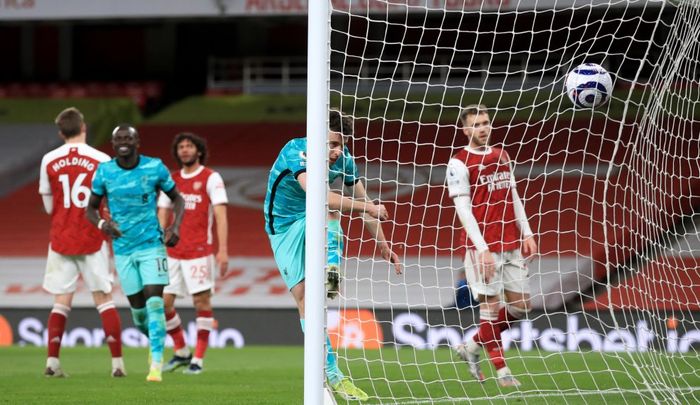 Lang pasning fra Thiago, og så klarer Robertson på herlig vis å få den inn i feltet. Men Arsenal får måket unna.