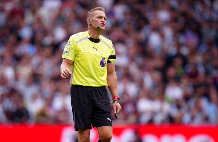 Frustrasjon på banen etter at dommeren lar spillet gå videre etter en hodesmell for Sesko.