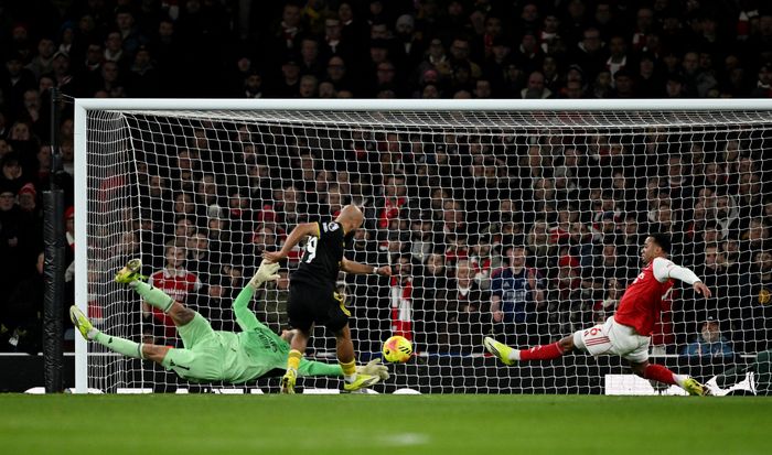Nå er det Trossard som flikker den videre til Jesus i bakrom, men brasilianeren er så vidt i offside.