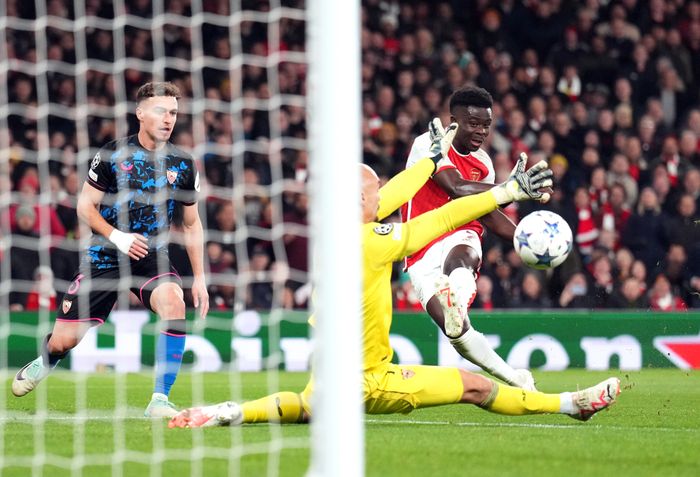 Gode kombinasjoner mellom Trossard og Saka, men Sevilla klarer å stoppe dem.