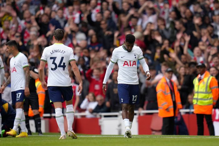 Så får Emerson direkte rødt kort - og lagkamerat Richarlison er rasende på hoveddommer! Tottenhams høyreback treffer ankelen til Martinelli nede langs sidelinjen. På TV-bildene ser det ikke ut som det er noen intensjon i å skade Arsenal-spilleren i hvert fall.