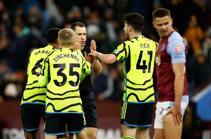 Det dømmes frispark til Aston Villa. Arsenal må fortsatt jakte utligningen! Foto: Reuters