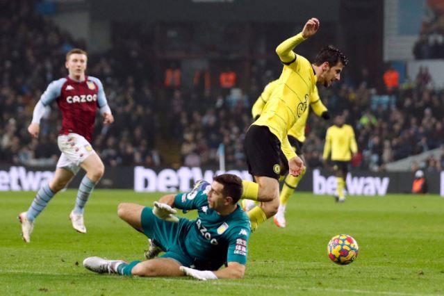 El Ghazi med en avslutning fra 17-18 meter - rett på Mendy. Villas første avslutning på mål. Chelsea har for øvrig hatt bare to avslutninger ...