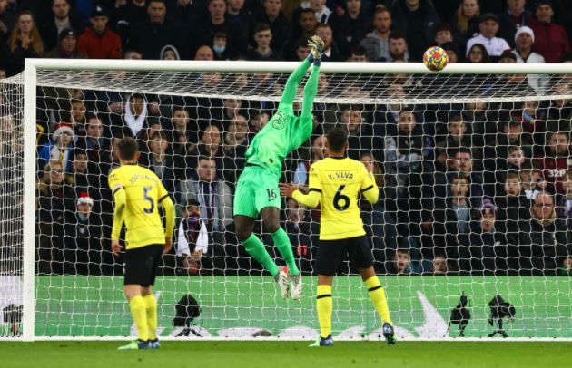 Mendy er våkent unna og "mæler" unna et forsøk på Villa-gjennomspill.