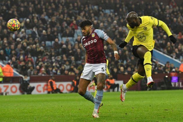 DER ER CHELSEA I LEDELSEN! Hudson-Odoi legger farlig inn fra venstre. Lukaku sniker seg fri fra Mings, og styrer headingen forbi Martinez og i nettet.