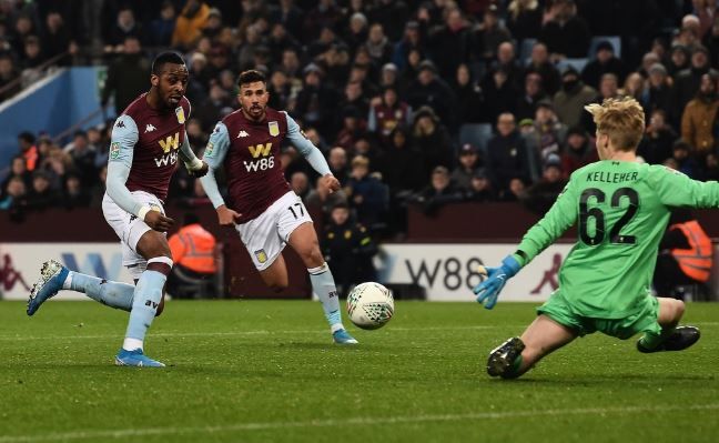 Aston Villa øker. Det er et innlegg fra Trezeguet som går via Boyes og i lengste hjørnet bak Kelleher. Der kan ikke keeperen klandres.
