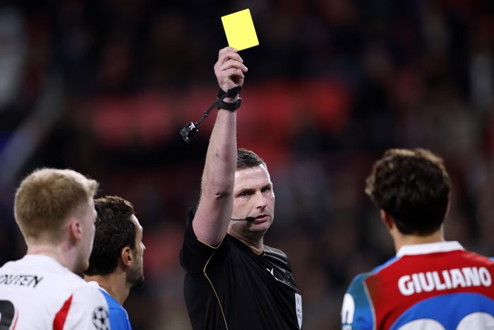 Michael Oliver er dommer. Her fra en Champions League-kamp.