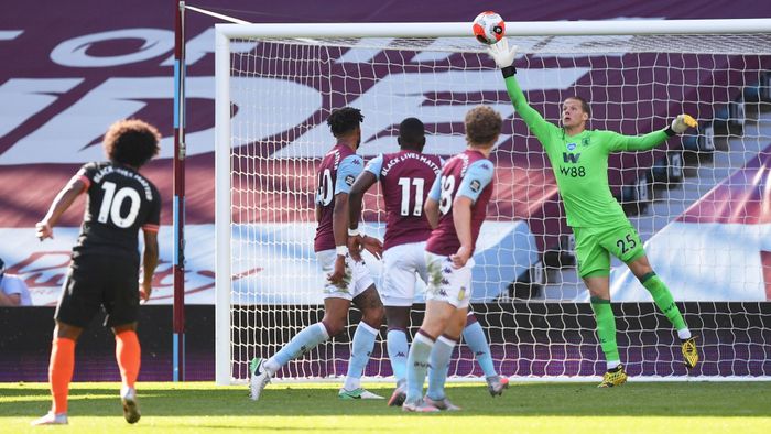 Da er det pause på Villa Park. Kampens største sjanse kom da Ørjan Nyland glapp ballen i et utkast og Diogo Jota kunne fyre av alene fra seksten meter – himmelhøyt over. Ellers har nordmannen stått stødig i en kamp som ikke har gitt oss de helt store målsjansene så langt.