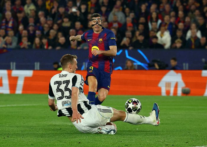 Barcelona bare kjører på! Polakken spilles fri fra Lamine Yamal etter at 18-åringen vender vekk alt og alle rundt seg. Lewandowski banker ballen i hjørnet og gir Barcelona 6-2!