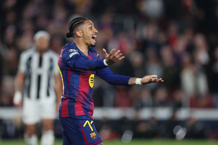 Raphinha setter Barcelonas syvende for kvelden! En forferdelig involvering av Willock som spiller ballen rett i beina på Raphinha. Han har all tid i verden på å ta ned, legge til rette og sette ballen i mål.