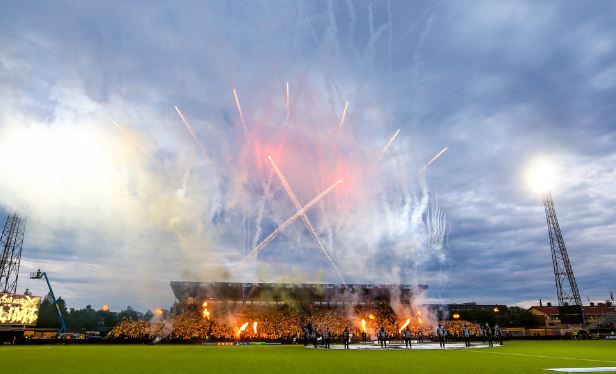 Dinamo Zagreb-spillerne tas imot til pipekonsert. Nesten fullt på Aspmyra allerede 40 minutter før kampstart!