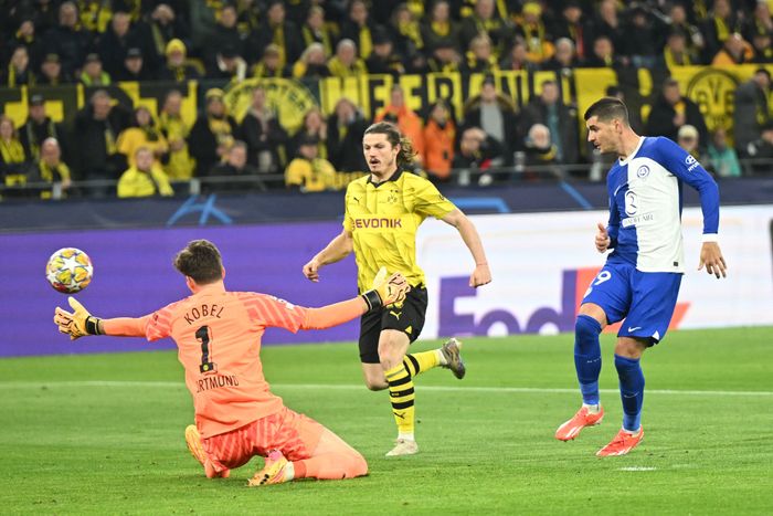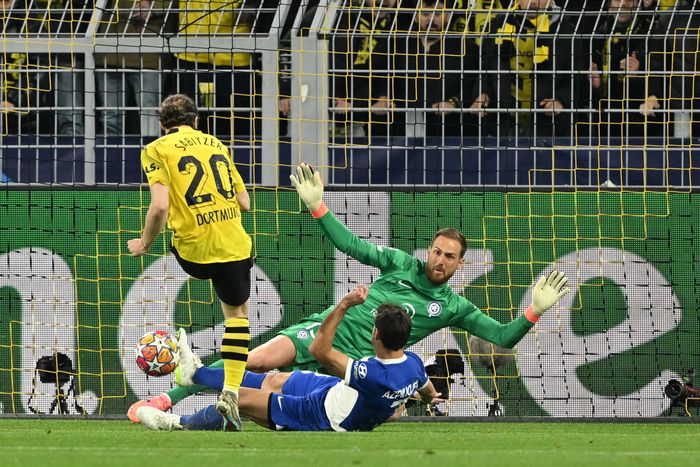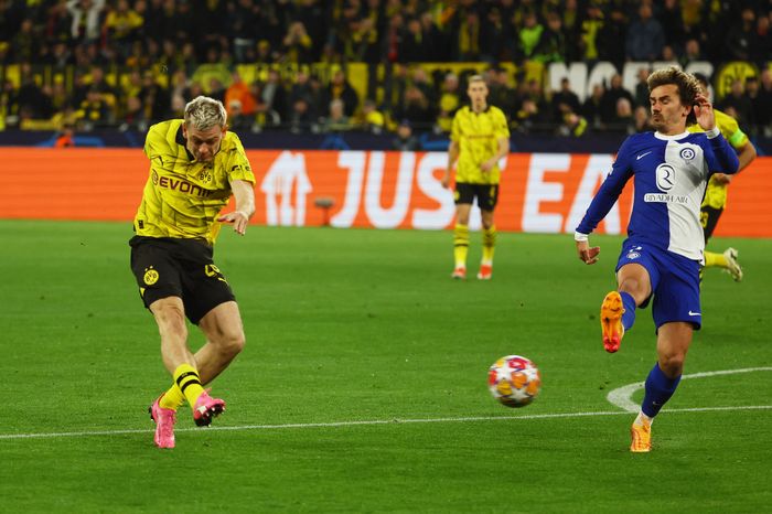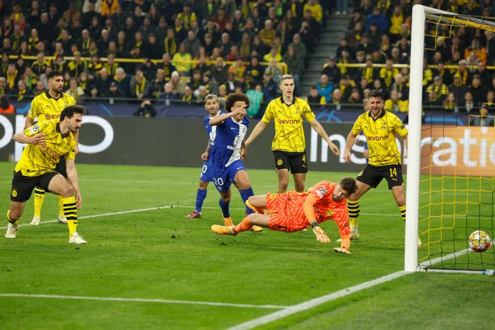 Angel Correa utligner til 2-2 på Signal Iduna Park. Scorer på egen retur etter et voldsomt Atletico-trykk. Borussia-keeper Kobel reddet rett før en kjempemulighet fra Rodrigo Riquelme.