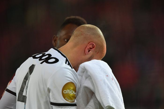 Reginiussen har fått et kutt i bakhodet og må ut på sidelinjen. RBK med ti mann nå. Foto: VG
