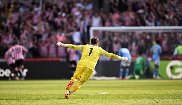 Frisparket tildelt Brentford FC er farlig nær Manchester City FCs målområde.