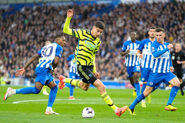 Kai Havertz i aksjon mot Brighton-forsvaret. Foto: AP