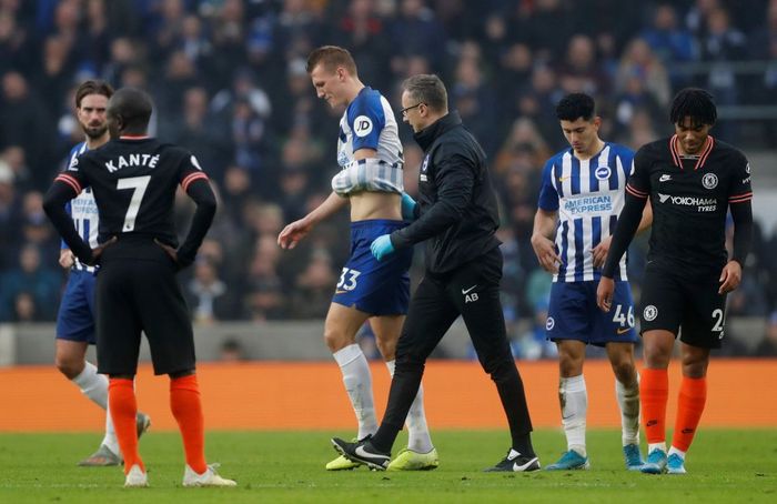 Burn fortsatt nede for telling. Ser ikke lovende ut for Brighton-forsvareren.
