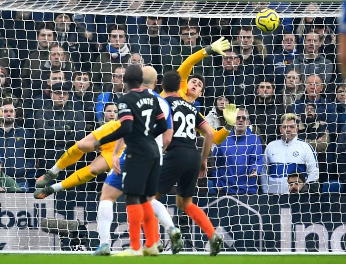 NESTEN! Stor mulighet for Brighton. Maupay spiller 45 grader ut til Trossard som prøver å curle ballen i det lengste hjørnet. Kepa med parat keeperspill da han får opp en hånd og redder! Foto: Reuters.