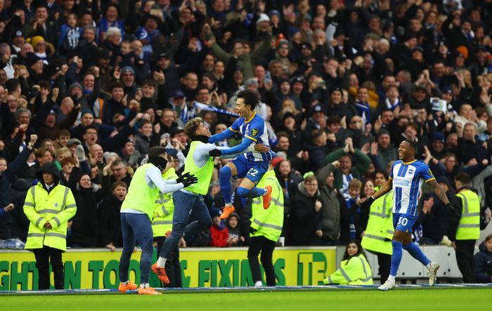 Har du sett! Rundlurer hele Liverpool-forsvaret med en vakker skuddfinte og da blir det ville jubelscener på Amex Stadium!