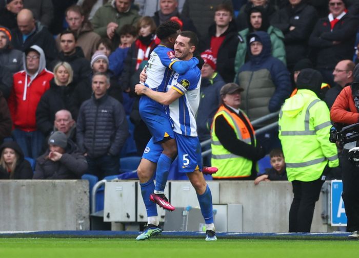 Lang ball fra Konate ender med Brighton-innkast langt inne på egen banehalvdel.