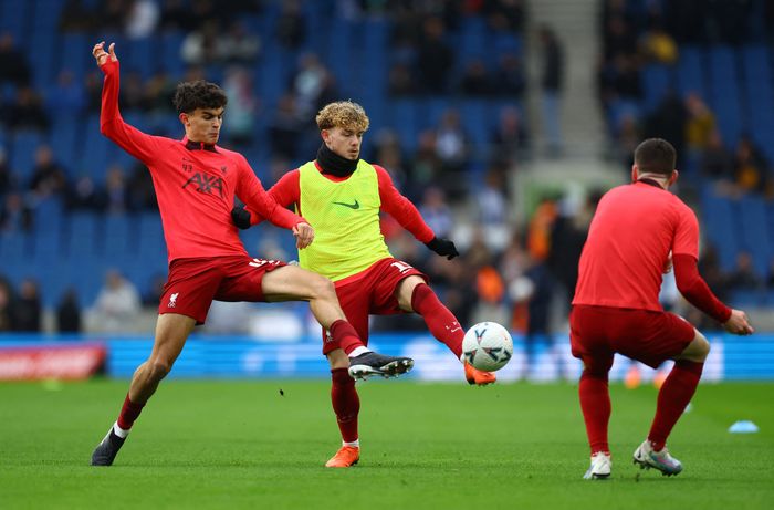 Torsdag signerte Stefan Bajcetic (t.v i bildet) en ny langtidskontrakt med Liverpool, og er nå bundet til klubben til sommeren 2027. I dag starter han sin tredje strake kamp.