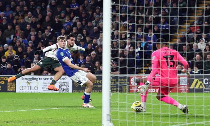 Garnacho får ballen videre til Pedro, som får den ut til Buonanotte på høyresiden. Sistnevnte får avsluttet, men den går rett i blokka.
