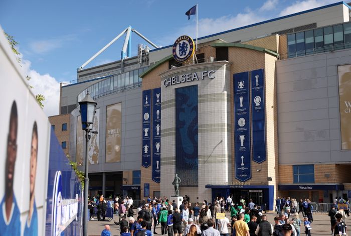 Slik ser den ut, Stamford Bridge - fra en kant. Millenium-inngangen er klar for å slippe folket inn. Foto: EPA