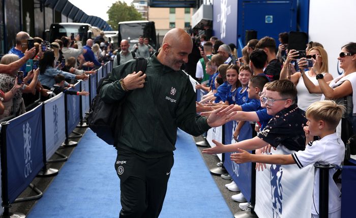 MANAGER ENZO MARESCA på vei inn på Stamford Bridge. Blir det mer å smile for, for Chelsea-treneren? Foto: REUTERS