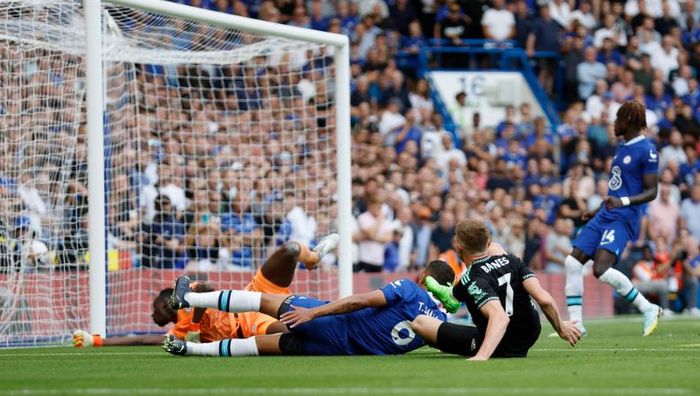 Da er det kamp igjen! Barnes skyter fra skrått hold med venstrefoten i korthjørnet. Det hjørnet skal Mendy ha kontroll på. Så er ikke presset til Silva noe imponerende i forkant. Foto: Reuters