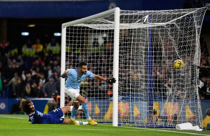 Og der satt den. Innbytter Mahrez scorer etter noen minutter på banen. Og innbytter Grealish setter målgivende. De Bruyne spiller til Grealish, han kommer ned på venstre, legger inn foran mål, på bakerste stolpe kommer Mahrez og setter ballen sikkert i mål med foten. Foto: REUTERS