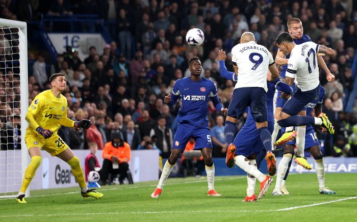 Frisparket fra Cole Palmer smeller i tverrliggeren, ned i bakken og høyt opp i lufta. Der får Jackson stige til værs helt alene og tar vare på sjansen. Spissen header ballen mesterlig inn til 2-0 i det vidåpne målet.