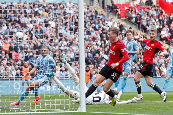 Manchester United slipper med skrekken! De ledet med tre mål, men Coventry kjempet seg tilbake fra 0-3 til 3-3. På overtid i andre ekstraomgang jublet lilleputten hemningsløst for 4-3-scoring, men målet ble senere annullert for en hårfin offside. Casemiro så deretter ut til å bli den store syndebukken på Wembley, men etter to Coventry-bom blir det en reprise av fjorårets FA-cupfinale for de to Manchester-lagene.