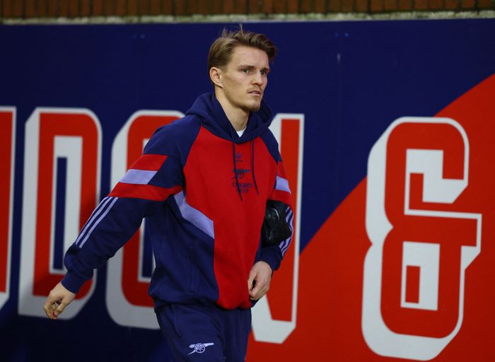 Arsenals kaptein og nybakt pappa, Martin Ødegaard, på vei inn på Selhurst Park lørdag kveld. Foto: REUTERS