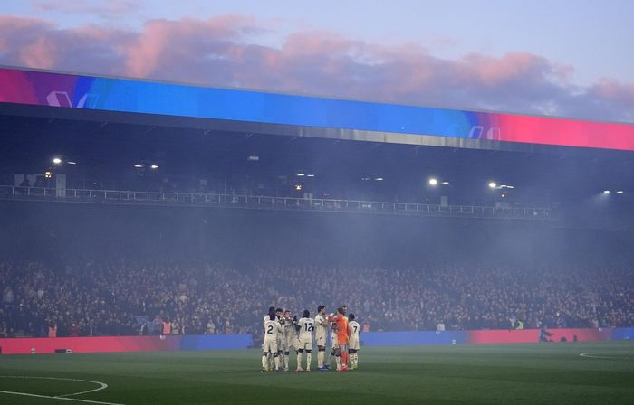 Palace-fansen roper "skyt" når Lacroix får ballen. Så spiller han Canvot, som ikke får tilrop fra tribunen. Franskmannen skyter likevel - 15 meter til siden og fem meter over.
