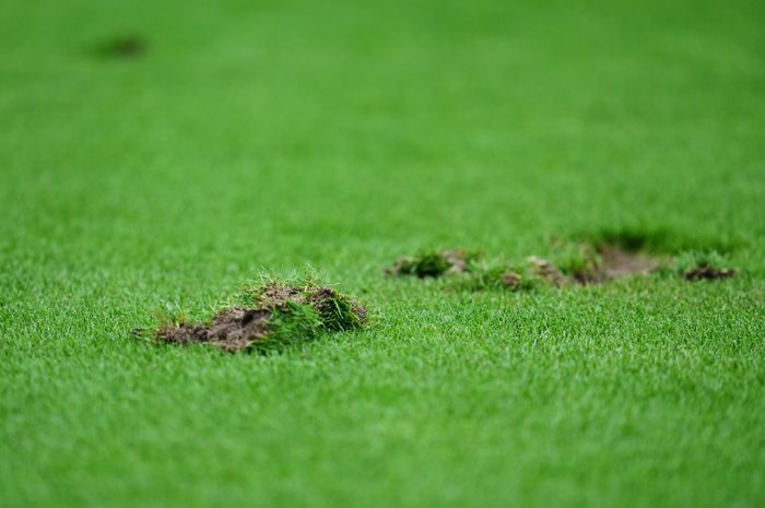 Flere som sklir utpå her. Banen virker å være veldig løs, som gjør at store gressflekker rives opp