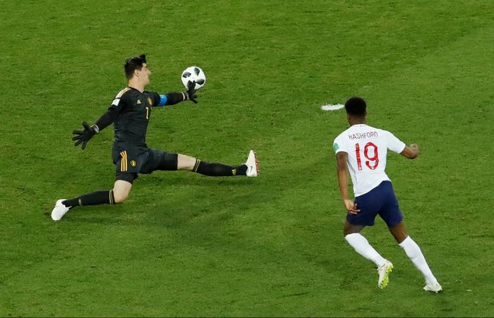 Rashford brenner til fra frisparket, men ballen går en halvmeter over mål. Courtois med veldig god kontroll.