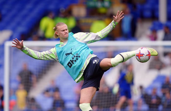 Stor sjanse for Haaland! Foden slår inn mot nordmannen og spissen kaster seg rundt i et saksespark. Godt forsøk, men avslutningen har retning utenfor mål idet ballen går i en Everton-spiller.